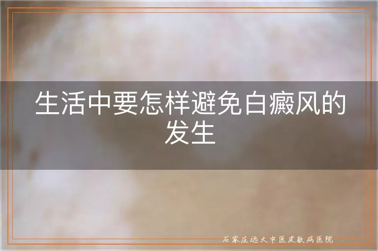 生活中怎样避免白癜风的发生?白癜风是中危害较大的皮肤病在生活中常见引起白癜风发病的原因比较复杂,白癜风可患于身体各部位对患者的皮肤美观造成了很大的影响如患病后不及时治疗,病情加重还会造成更大的伤害甚至诱发癌变危害患者生命,因此,为避免白癜风的发生对我们的生活造成不便平时要引起重视,做好疾病的预防工作,那么,生活中要怎样避免白癜风的发生呢?下面让我们看看石家庄治疗皮肤病好医院专家是怎样介绍的。